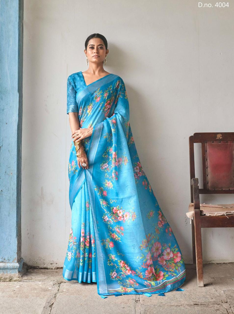 Bhumi Sarees crafted from soft linen showcase a refined floral print that combines comfort with elegance. The lightweight linen fabric offers breathability and a smooth texture, ensuring ease of wear throughout the day. Its intricate floral design enhances the saree’s aesthetic appeal, making it suitable for both formal events and casual gatherings. This saree exemplifies quality craftsmanship and timeless style for discerning wearers.