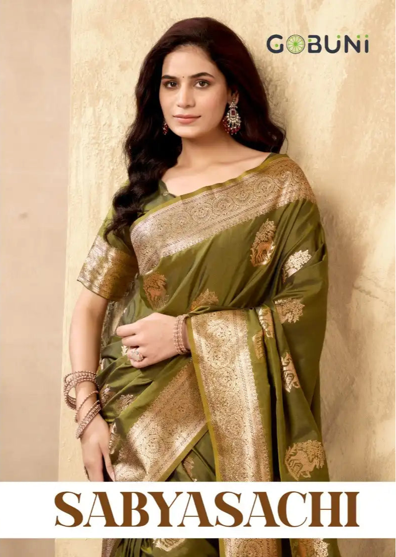 GOBUNI Sarees showcase exquisite craftsmanship with their rich pallu silk design enhanced by intricate Zhallar work. This saree offers a luxurious texture and elegant drape, making it ideal for formal events and traditional celebrations. The detailed Zhallar embellishments add depth and sophistication, reflecting expert artistry and timeless style. Perfect for those seeking a blend of heritage and premium quality in their ethnic wardrobe.