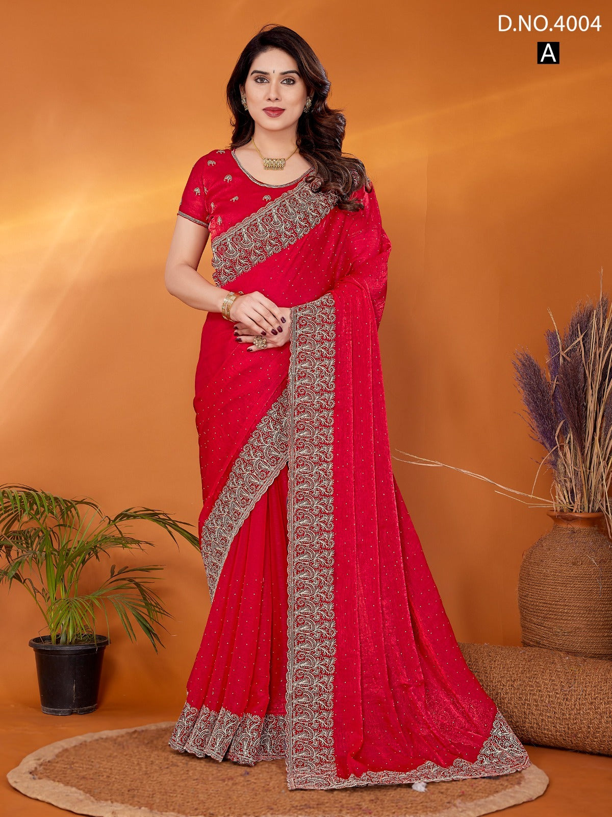 Jay Shree Sarees crafted from fine fandy chiffon feature intricate zari and stone work, combining elegance with traditional artistry. The lightweight chiffon fabric ensures comfort and graceful draping, while the detailed embellishments add a luxurious touch, making it ideal for special occasions and festive events. This saree exemplifies expert craftsmanship and timeless style.