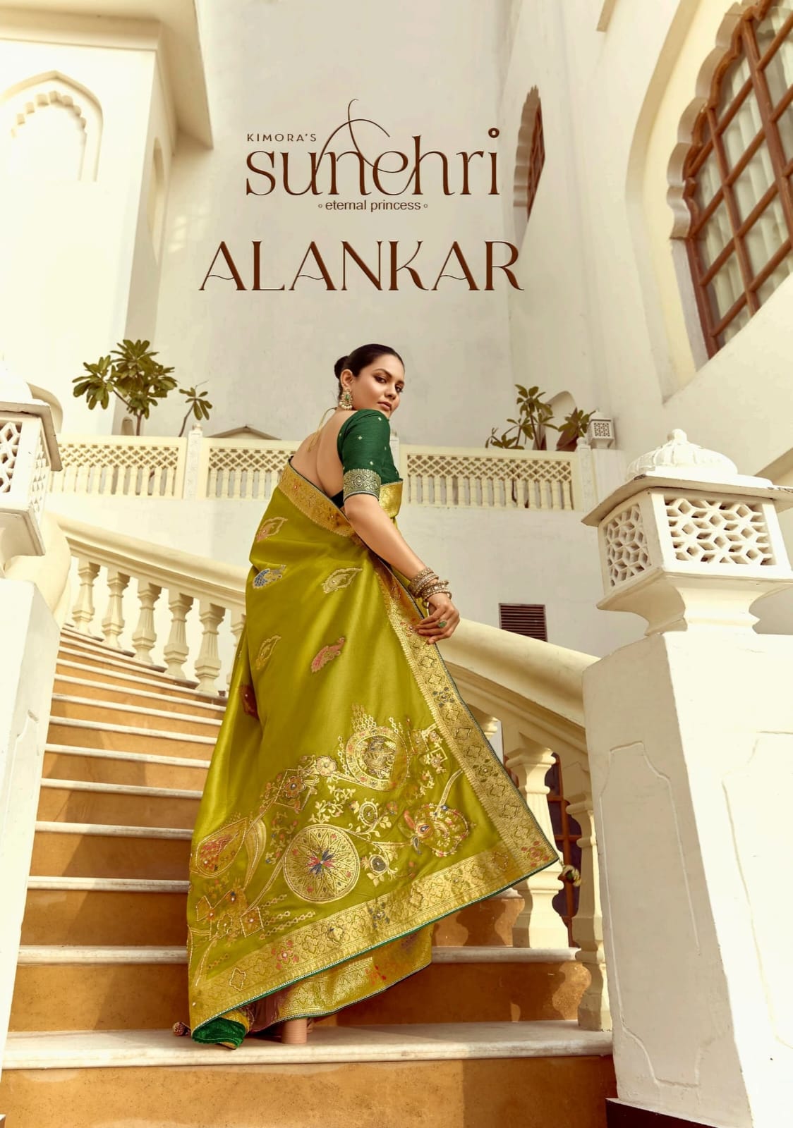 Kimora sarees are crafted from pure viscose fabric, ensuring a smooth and breathable feel. The hand-worked body highlights meticulous detailing, reflecting skilled artistry. Paired with a designer blouse, this saree offers a refined and elegant look suitable for formal and festive occasions.
